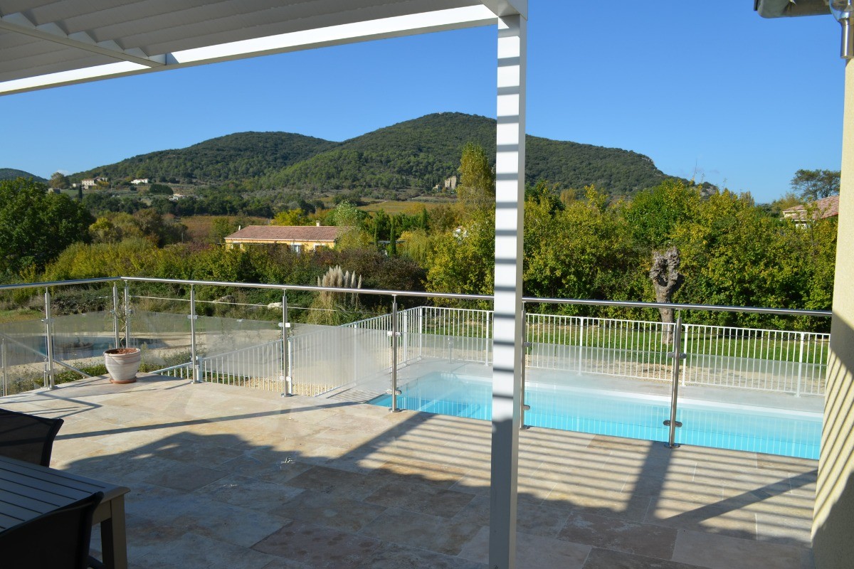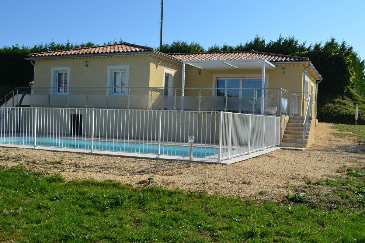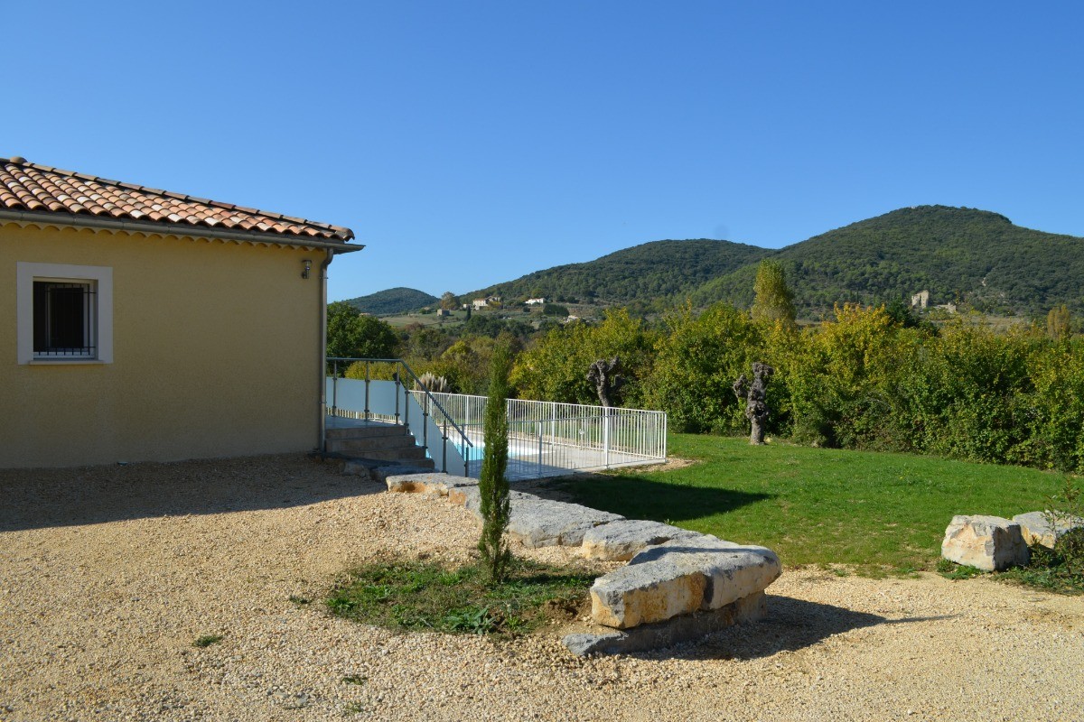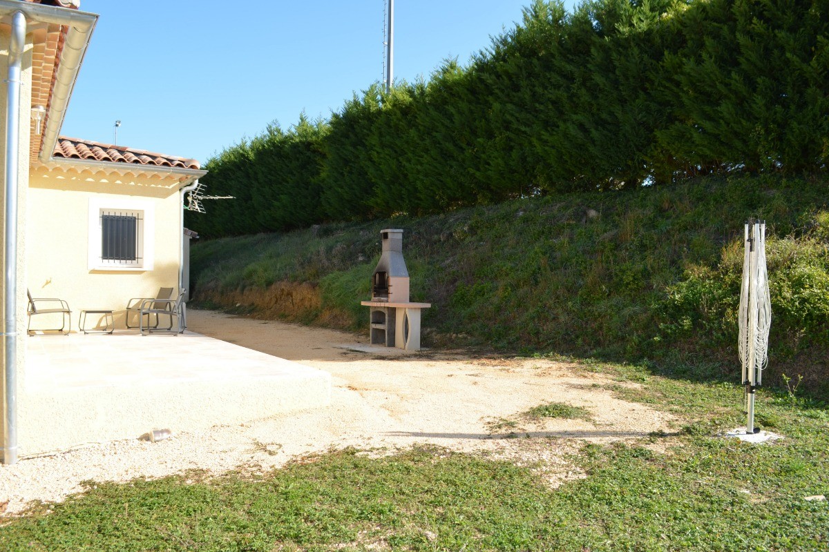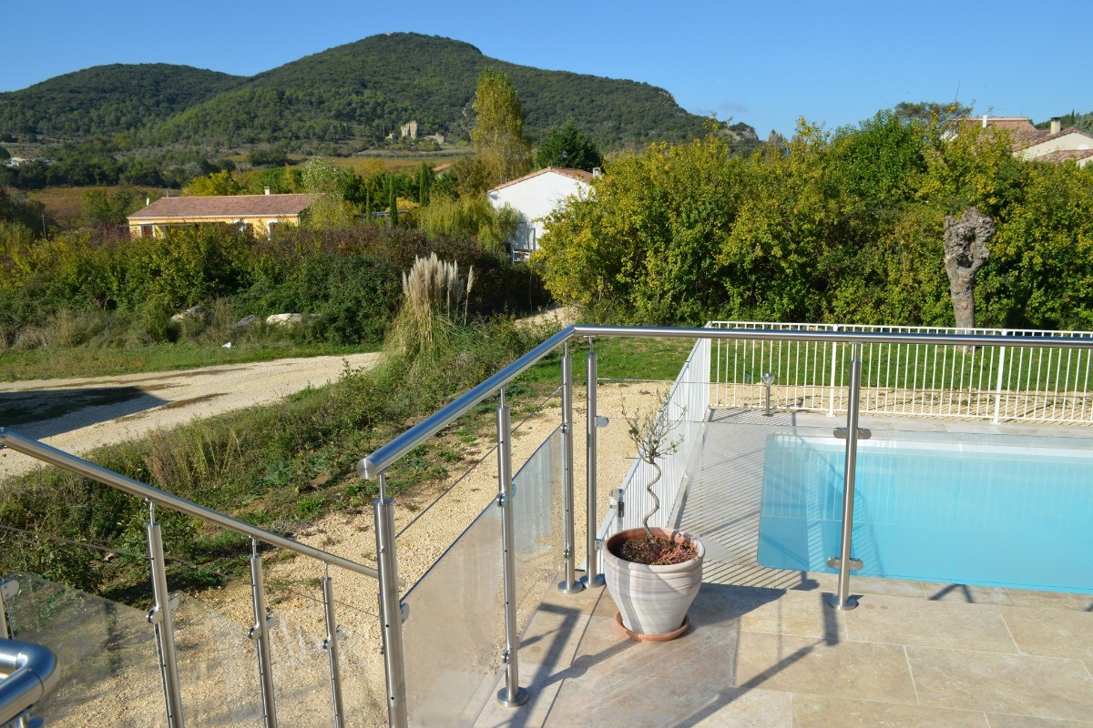 New house in the south Ardeche at the limit of the Gard fully equipped for 10 people with private pool. You enter the spacious living room with fully equipped kitchen and its central island surrounded by a bar and stools, dining area with large table for 10 people and sitting area with panoramic sofa, 4 independent bedrooms (2 bedrooms with each a bed 160x200cm, a bedroom with a bed 140x200cm and a bedroom with 4 beds 90cm: a single bed 2 bunk beds and a trundle bed for children). A shower room and a bathroom with wc as well as an independent wc. Enjoy the large terrace shaded by a pergola and overlooking the private secure swimming pool. You benefit from a second terrace behind the house with fixed barbecue and petanque ground. The villa is new (opening end 2020) the garden has been planted with trees since November 2020.