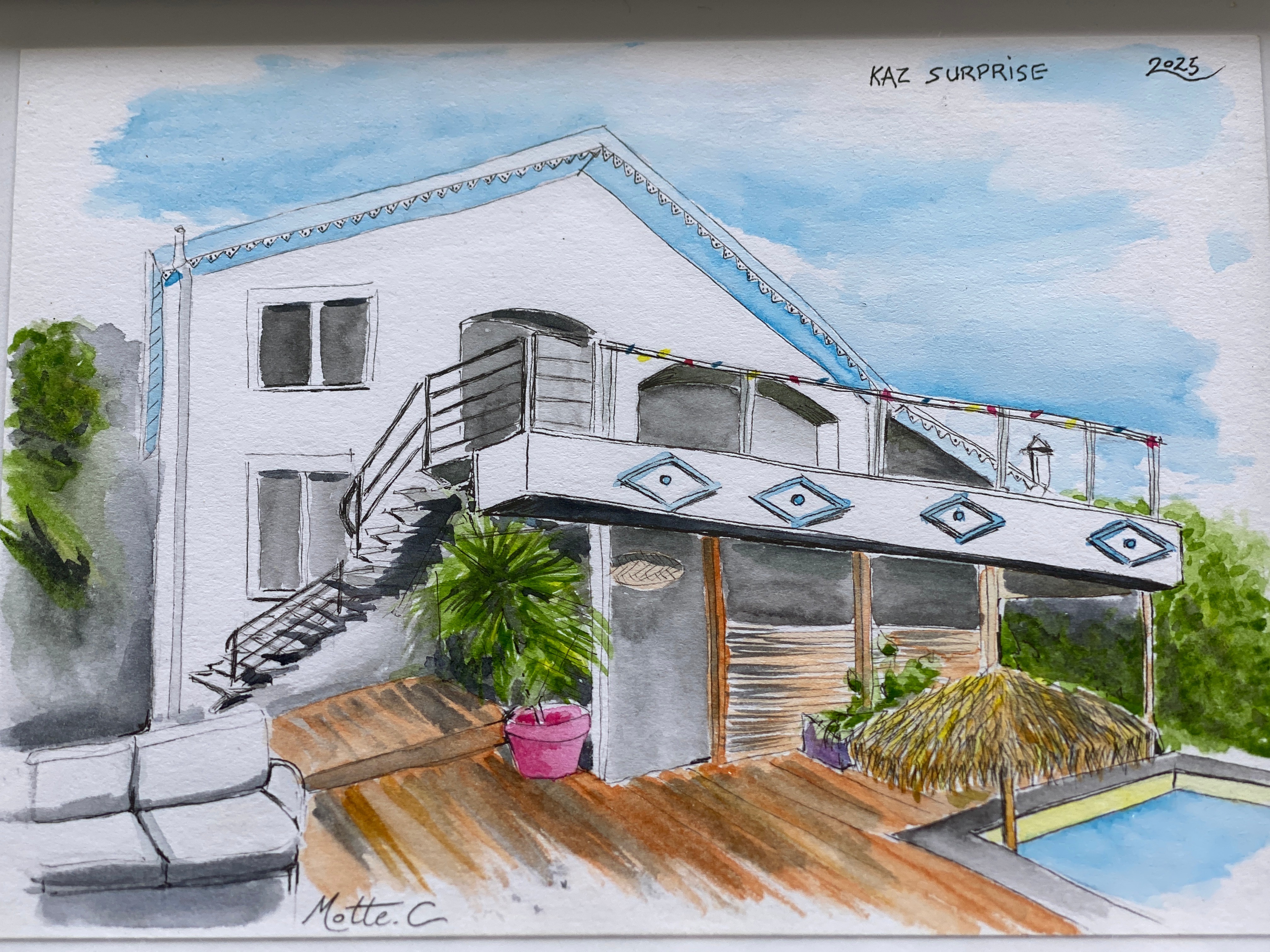 The accommodation is accessible by a staircase from the 3-space car park overlooking the CD13. With its large terrace and private jacuzzi, this new space will offer quality services, always with a magnificent view of the Saint-Leu lagoon...