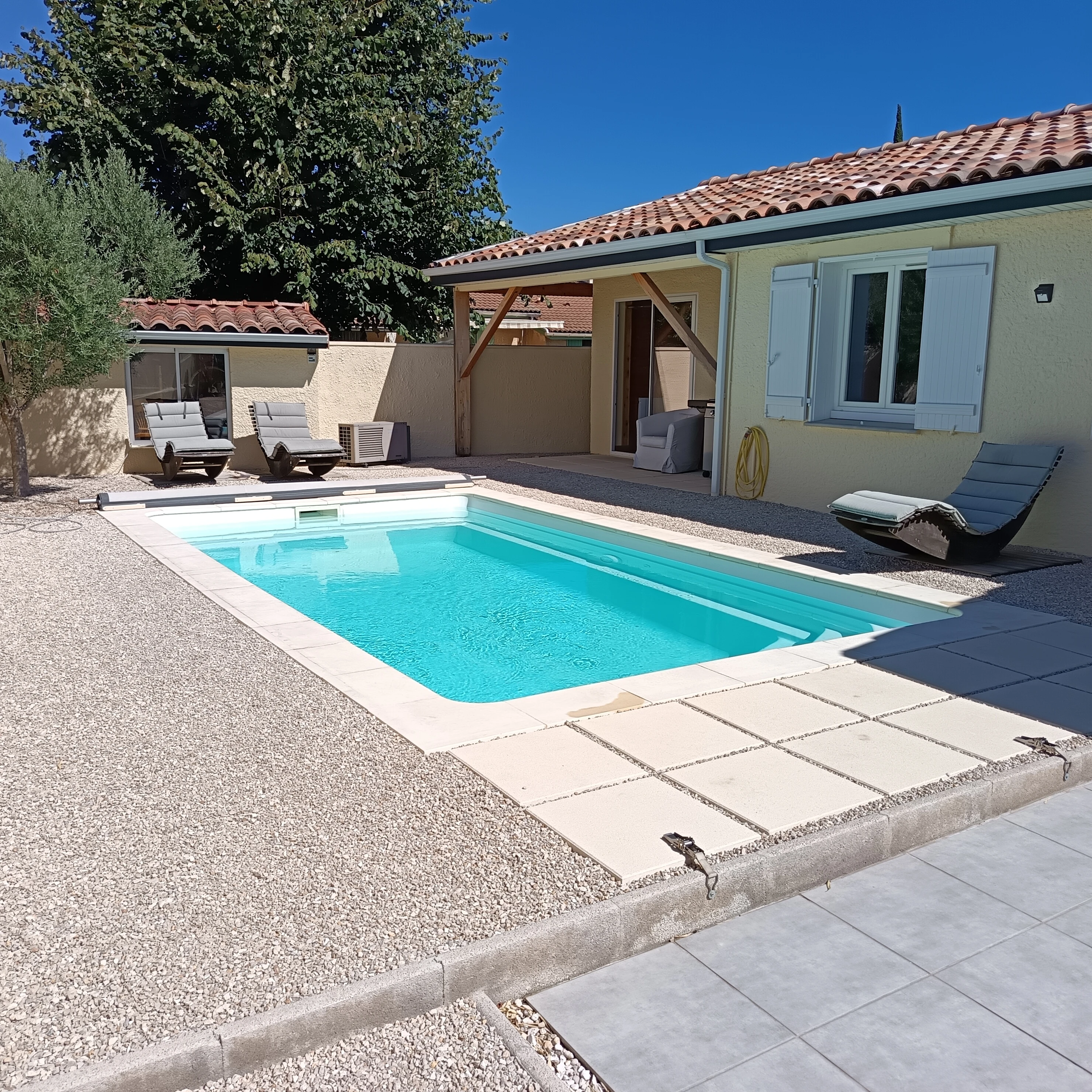 Single-storey accommodation of 24 m² comprising : A soothing private bedroom (with lock) A secure adjoining room dedicated to your bikes, panniers and luggage, with fridge, storage, hanging space, storage, etc. A courtyard with private, secure parking and direct access to the accommodation. Workshop and tools available for cyclists, and sockets for recharging bikes. In our house, you will benefit from A shower room A separate toilet A fully-equipped kitchen to prepare and eat your meals. A living room A laundry room for your washing Bed linen, towels, bathrobes and bathrobes provided Free Wi-Fi No smoking Pets not allowed Quiet outdoor space, terrace, gravelled area, garden furniture with sun loungers and barbecue area. Heated swimming pool from May to October