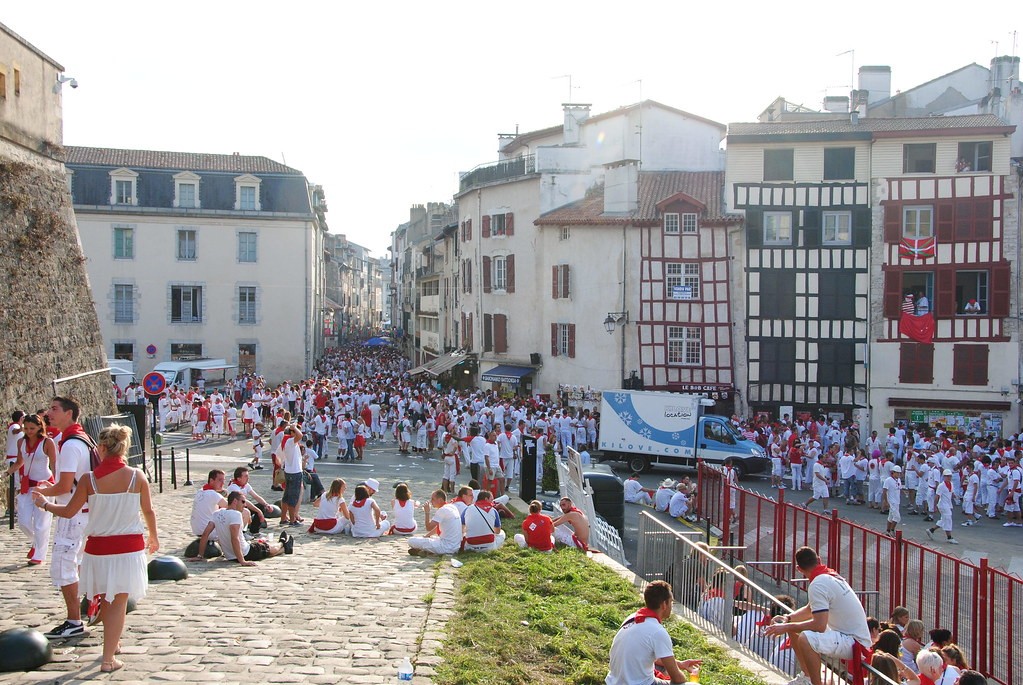 Impossible d’évoquer les férias sans commencer par Bayonne, capitale festive du Pays Basque. Pendant cinq jours, la ville revêt son costume d’apparat : tout le monde en blanc, avec un foulard et une ceinture rouges. Le coup d’envoi est donné depuis le balcon de la mairie, où la foule se presse, impatiente, pour voir tomber les clés de la ville.