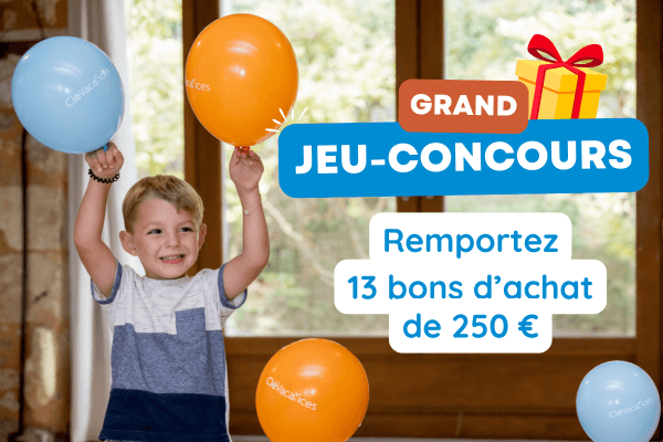 🎁 13 gagnants recevront chacun un bon d’achat de 250 € valable pour la réservation d’un séjour dans un hébergement Clévacances.