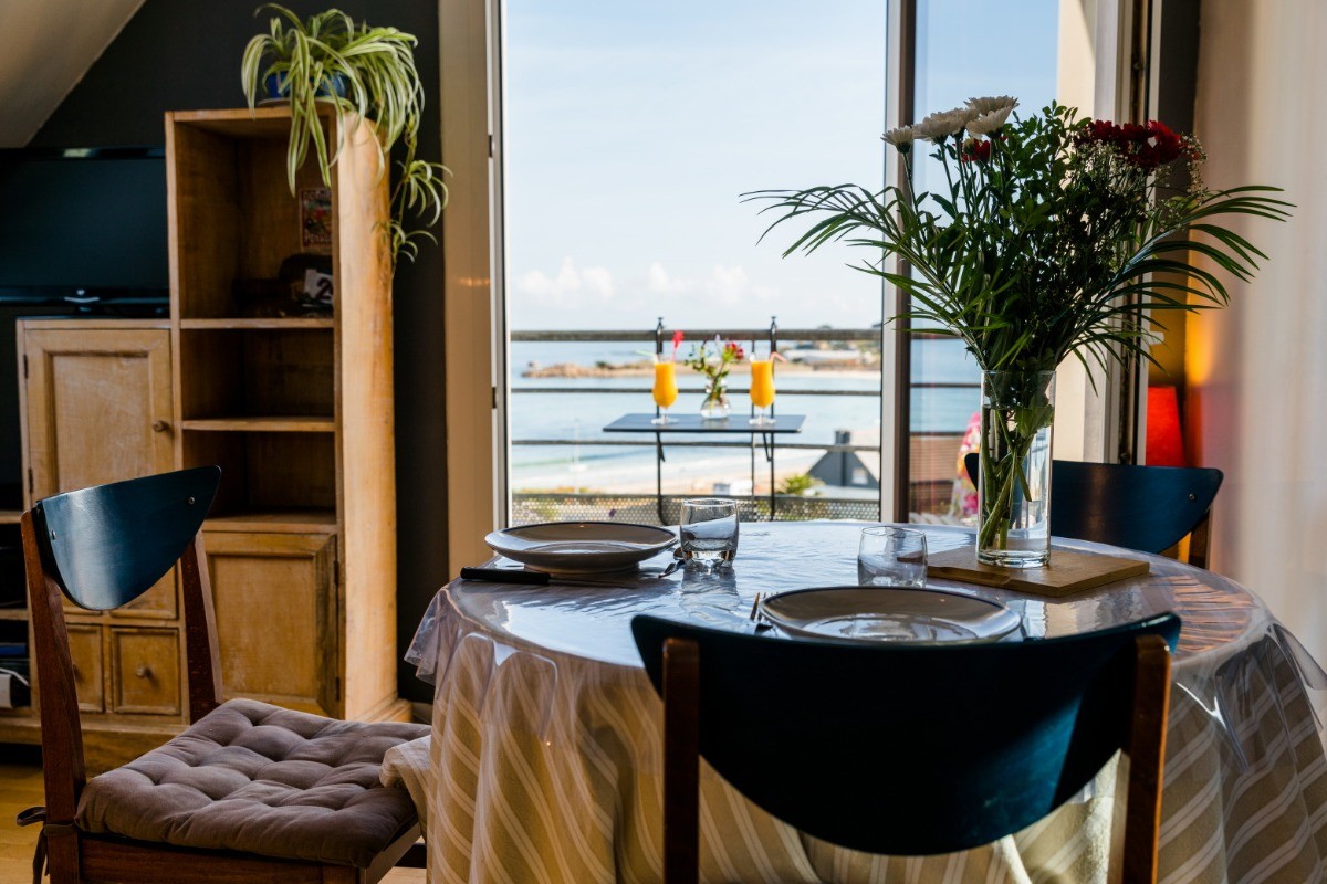 Vue sur mer exceptionnelle et imprenable pour cet appartement, labellisé 3 clés (CléVacances) et classé 3 étoiles en meublé de tourisme, situé à 50m de la plage de Trestel en Trévou-Tréguignec sur la Côte de Granit Rose en Bretagne à moins de 10mn de Perros-Guirec Classement et label sont des Garanties de qualité : hébergement contrôlé régulièrement L'appartement se compose : - d'un espace cuisine (avec cafetière, four, frigo, micro-ondes, bouilloire, plaque de cuisson x 3, grille-pain, aspirateur, .). - d'un espace salon (avec TV et lecteur DVD) / espace repas. Vous disposez également : - d'un espace chambre fermé avec 1 grand lit (140), placard / penderie, - d'une salle d'eau avec velux, douche, lavabo, lave-linge, sèche-cheveux et WC, - d'un parking privatif, numéroté Draps et housses de couettes et d’oreillers fournis. Le plus : lit fait à l’arrivée, appréciable après la route ! Chien sage accepté... En extérieur, profitez d'un balcon privatif vue imprenable sur plage et mer avec table et 2 chaises, ainsi que d'un parc commun à la résidence avec barbecue et table de pique-nique et allée de boules Un cabanon partagé est également à votre disposition pour ranger les vélos ou équipements divers si besoin Pour les tarifs, nous vous invitons à cliquer sur la date de votre choix dans le calendrier pour voir le détail que vous retrouverez également ci-dessous. tarifs à la semaine : - très basse saison : 280€ la semaine du 5 octobre 2024 au 26 mars 2025 (60€ la nuit pour 2, 3 ou 4 nuits, puis 270€ pour 5, 6 ou 7 nuits). - moyenne saison 1: 350€ la semaine du 26 mars 2025 au 7 juin (60 la nuit pour 4 nuits mini) - moyenne saison 2 : 400€ du 7 juin au 14 juin, - moyenne saison 3 : 450€ du 14 juin au 28 juin et 500€ du 28 juin au 5 juillet - très haute saison : 600€ du 5 juillet au 30 août. - moyenne saison : 450€ du 30 août au 20 septembre. - moyenne saison : 400€ du 20 au 27 septembre ; - basse saison 1 : 350€ du 27 septembre au 3 octobre 2025 puis 300€ du 3 octobre 2025 au 25 mars 2026, Quelques informations complémentaires : Chèques Vacances acceptés (nous avons l'agrément ANCV). et acceptons aussi les e chèques vacances Une caution de 150€ est demandée à l'arrivée; elle sera restituée au plus tard 15 jours après le départ après l'état des lieux. Les départs se font le samedi matin à l'heure de votre choix et au plus tard pour 10h et les arrivées à l'heure qui vous convient à partir de 12h30. Des arrangements sont possibles pour arriver plus tard ou plus tôt car nous habitons dans la commune et nous pouvons vous accueillir à l'heure qui vous convient. Anglais parlé N'hésitez pas à nous demander d'autres photos et nos disponibilités pour nos 3 locations : nous avons 2 locations à moins de 100m de la plage : 1 appartements pour 2p. avec très grande vue sur mer et une maison pour 4p avec une très belle vue mer d'une chambre et d'une terrasse, ainsi qu'une maison dans le village au calme à 1,2km de la plage. Voir aussi notre site: locations-trestel.fr [[l'échange de vos coordonnées n'est pas autorisée]] [l'échange de vos coordonnées n'est pas autorisée] [l'échange de vos coordonnées n'est pas autorisée]