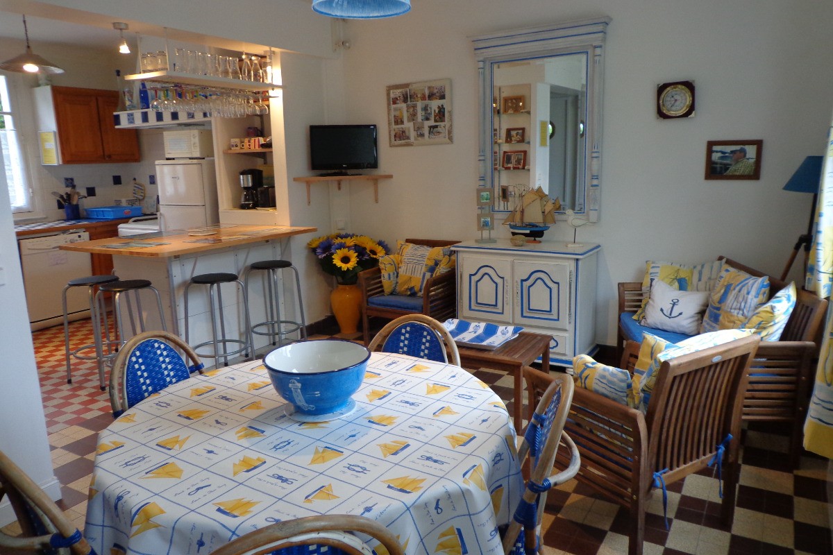 À seulement 400 m de la plage, cette charmante maison au décor esprit bord de mer offre tout le confort nécessaire (capacité maximale de 6 personnes) pour des vacances réussies. Elle comprend un séjour, une cuisine équipée avec lave-vaisselle, lave-linge, micro-ondes/grill, ainsi que 3 chambres disposant de 4 lits simples et 1 lit double. Vous y trouverez également une salle d'eau avec douche et un cabinet de toilette. L’extérieur se compose d'une terrasse aménagée exposée sud, idéale pour des repas en plein air, ainsi que d’un jardin clos. Située à 900 m du centre-ville et des commerces, et à 1 km de la thalassothérapie, de la gare SNCF et de la gare maritime, tout peut se faire à pied, sans besoin de véhicule. Un parking est également disponible. Location toute l'année.