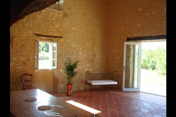 Très grande pièce , agréable , avec carreaux anciens , une grande cheminée en pierre et un meneau donnant , avec la porte -fenêtre ,beaucoup de clarté et un champ de vision sur les Pyrénees. Pièce servant de Salle à manger pièce Beaucoup de caractère
