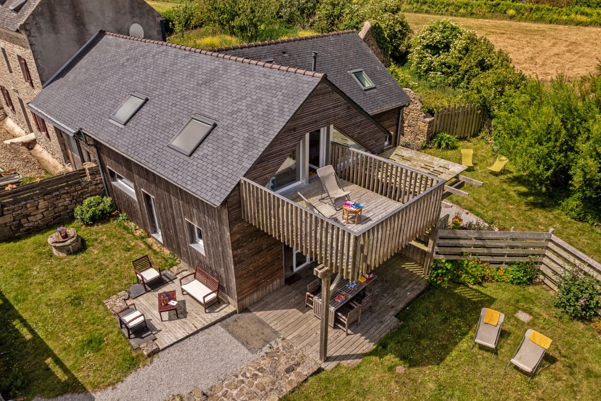 Le gîte "Kermadid" est récent ,conçu pour 4 personnes (voire 5 s'il y a des enfants). Il est situé en dehors du bourg, à proximité de la mer sur un terrain clos au cœur d'une propriété de 5000m2. Il est mitoyen du gîte "Kermadig" cependant les accès et jardins sont totalement indépendants. Il se situe au lieu-dit Kermaden, à 1km de la baie de Goulven dans une région remarquable de la Côte des Légendes (réserve ornithologique, dunes de Keremma et le célèbre site de Ménéham). Le littoral reste préservé, la plupart des côtes sont encore sauvages. Vous pourrez pratiquer de nombreux sports nautiques (planche à voile, kayak de mer, kitesurf, paddle, char à voile...), de la randonnée, faire du vélo en toute tranquillité ou rester paisiblement au gîte pour vous ressourcer. Nous sommes à votre disposition , à proximité si vous le souhaitez pour vous conseiller et veiller à ce que votre séjour soit agréable , reposant, dépaysant... Le plus de cet hébergement : -Meublé 4 étoiles. -Un balcon-terrasse de 12m2 « réservé », à la grande chambre. -Tout est compris (hors taxe de séjour et ménage) : Lits faits à votre arrivée , le linge de toilette et de maison (petites et grandes serviettes de toilette,gants de toilette, torchons) est fourni gratuitement. -"proche " de Brest( Océanopolis, départ vers les îles ...), de Roscoff( île de Batz...). -Il se trouve dans une voie sans issue, en dehors du bourg, à 4 minutes en voiture de la première plage et à 300m d'un chemin de randonnée ou VTC... Accueil bébé : chaise haute, lit bébé, barrières de sécurité, jardin clos. - un carport pour auto, motos et vélos (voire garage pour vélos ). -Prêt de vélos. Descriptif ci-dessous: 1-Au rez-de-jardin : >Le salon : un canapé, deux fauteuils, une table basse, TV à écran plat (108cm) /canal Sat, lecteur DVD, mini-chaîne. >La salle à manger : une grande table ronde avec ses 4 chaises en cuir et un buffet en enfilade. >La cuisine : four à pyrolyse, four micro-combiné, plaque à induction 3 feux, hotte îlot, lave-vaisselle, réfrigérateur-congélateur, machine lavante/séchante , robot, cafetière, bouilloire, grille-pain, presse-agrumes électrique, fer et table à repasser... Salle d'eau : douche à l'italienne(120X90) et coin lavabo. >WC indépendant. > Les terrasses: Une grande au Sud-Est (18m2 ) avec 1table à rallonges , 4 fauteuils de jardin et une plancha à gaz. Une petite au Sud avec un salon de jardin. 4 transats mis à votre disposition. II-A l’étage (accès par un « escalier-bibliothèque »): -Une grande chambre : cette chambre mansardée, possède deux lits de 80cm X 200 cm jumelés (grand lit) mais ils peuvent être séparés à votre demande à l'avance. La pièce est très lumineuse grâce à un pignon entièrement vitré et à un velux au Sud. La chambre possède une penderie, 4 étagères. De la chambre, on peut accéder à un balcon-terrasse d'une surface de 12 m2 avec vue sur la baie de Goulven (selon le type de culture du champ voisin) . - Une chambre plus petite mais modulable : La chambre mansardée, côté sud, possède deux lits de 90 cm X 200 cm et il est possible d'ajouter un lit de 90cm X190cm. Un velux éclaire cette pièce. La chambre possède une penderie et 4 étagères. Cet espace est modulable grâce à 3 portes coulissantes. -Salle de bains avec WC : Un petit velux permet d'éclairer cet espace. Elle est équipée d'une baignoire d'angle et d’un wc. Vous devrez faire le ménage à votre départ . Sinon , vous avez la possibilté de payer le forfait de 80€. 1 animal de compagnie accepté (supplément de 89€) >préciser la race et le poids. Pour un deuxième animal contacter le propriétaire . Charge d'octobre à fin mai : électricité en supplément sur relevé de compteur à l'arrivée et au départ.