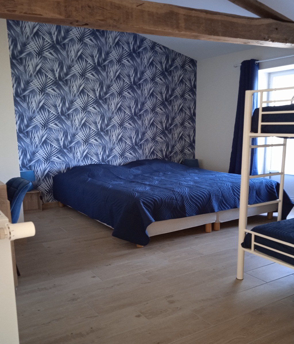Chambre avec 1 lit double et 2 lits simples superposés ou 2 lits simples et 2 lits simples superposés avec 1 salle de douche et 1 WC séparé privatifs