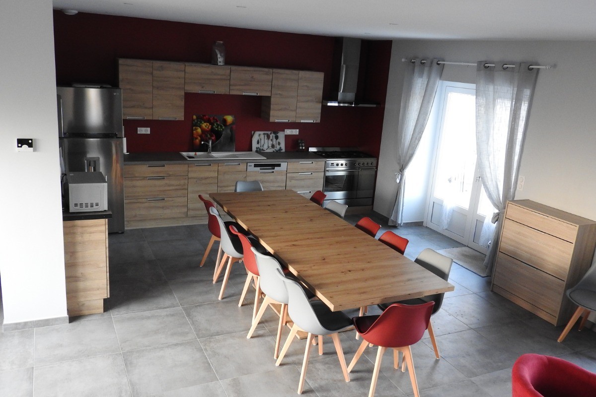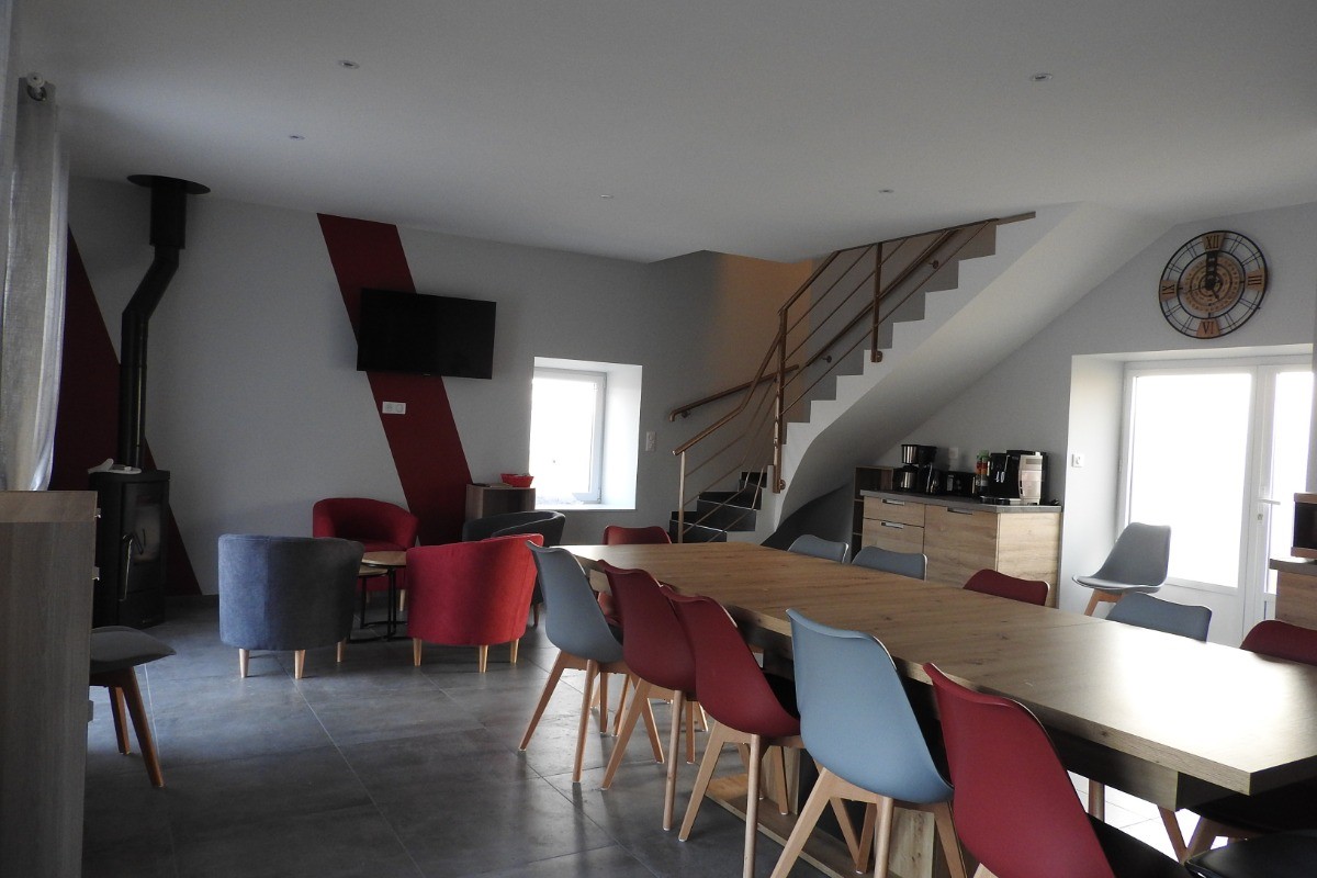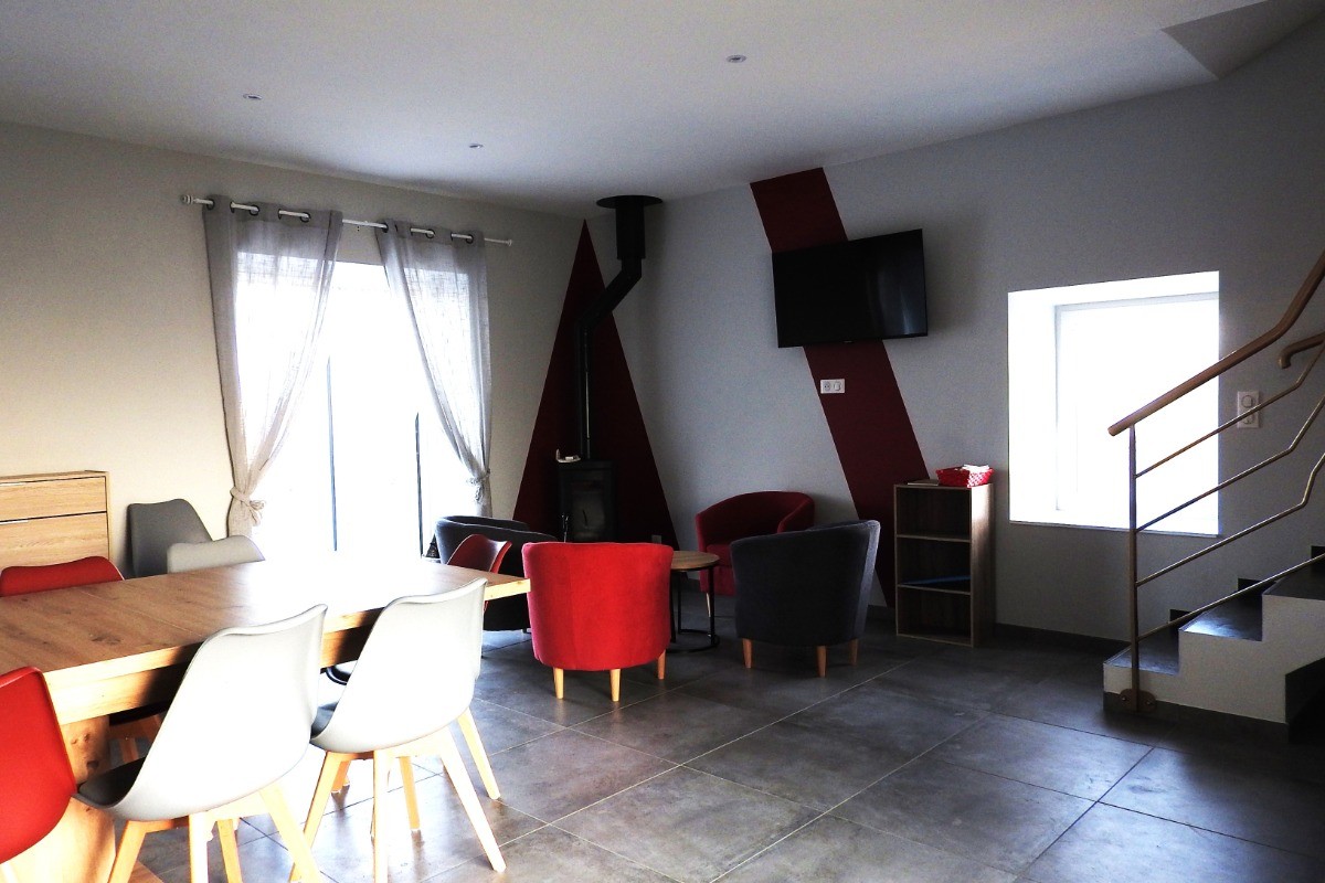 Nicole et Guy vous accueillent dans leur gîte de groupe d'une capacité de 12 personnes, niché au cœur des Monts du Lyonnais, à Haute-Rivoire, à 50 km de Lyon, 45 km de Saint-Etienne. Leur grange rénovée, isolée au milieu de la campagne, est un lieu idéal pour les rassemblement en famille ou entre amis, où chacun aura une chambre et une salle de bains privative. Le logement bénéficie d'une terrasse, d'une cour et d'un espace herboré privatif (espace de stationnement privatif inclus). L'hébergement comprend : - Une grande pièce à vivre avec cuisine américaine au rez-de-chaussée, un WC. - A l'étage, 4 grandes chambres avec chacune leur salle d'eau et wc privatif (2 chambres pour 2 personnes et 2 chambres pour 4 personnes) - Extérieur privatif avec terrasse, salon de jardin, barbecue et espace vert, parking privé au gîte. Haute-Rivoire est un village niché au cœur des Monts du Lyonnais, entre Lyon et Saint-Etienne. Au calme, dans la campagne, vous aurez ainsi le loisir de vous balader sur nos nombreux chemin de randonnées, de pêcher dans nos charmantes petites rivières, ou de découvrir des lieux remarquables : Salva Terra, le Parc des Loups de Courzieu, l'atelier Musée du Chapeau de Chazelles sur Lyon, Feurs, la ville, son musée et l'Ecopole du Forez (et son grand marché les mardis matins), St-Symphorien-sur-Coise classé Plus Beaux Village de France. A 50 km de Lyon et 45 de St-Etienne, pour une échappée citadine ! Deux hébergements disponibles à Haute-Rivoire : Gite La Charmatière Rubis et Saphir.