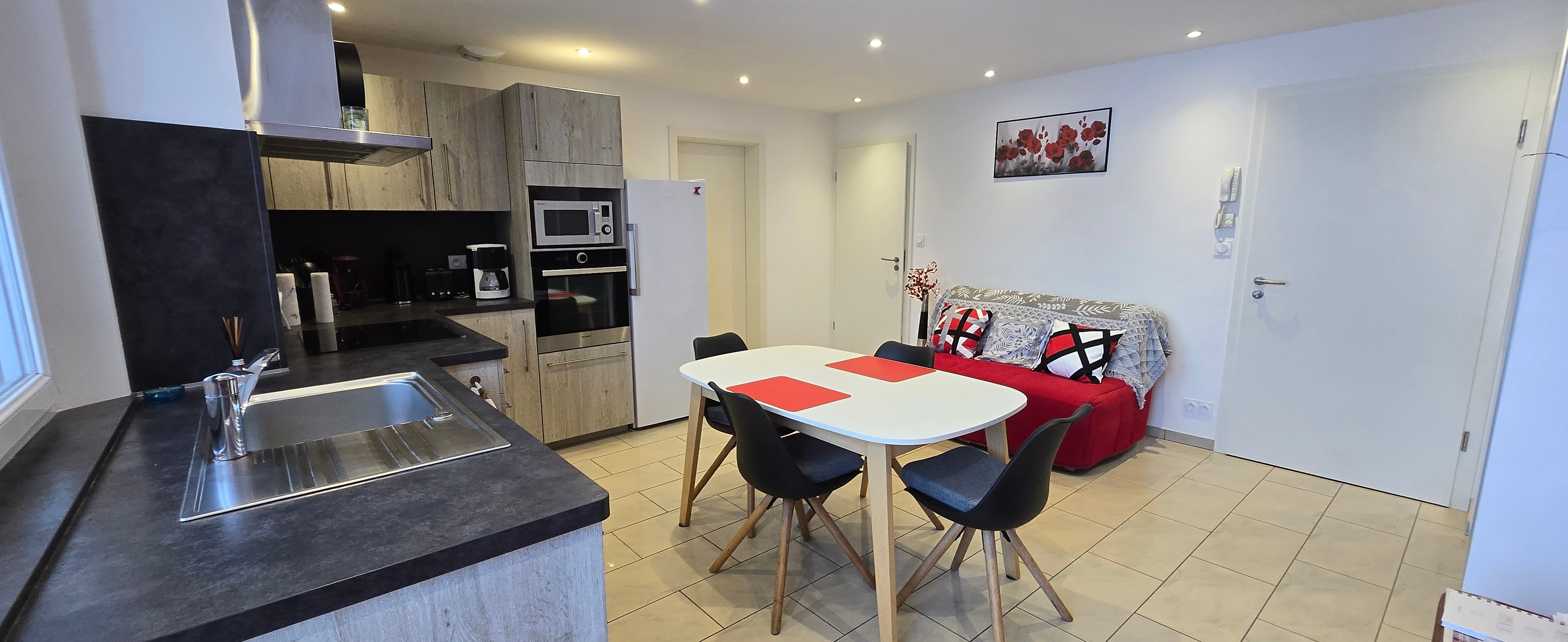 Cuisine toute équipée avec canapé lit 140*190