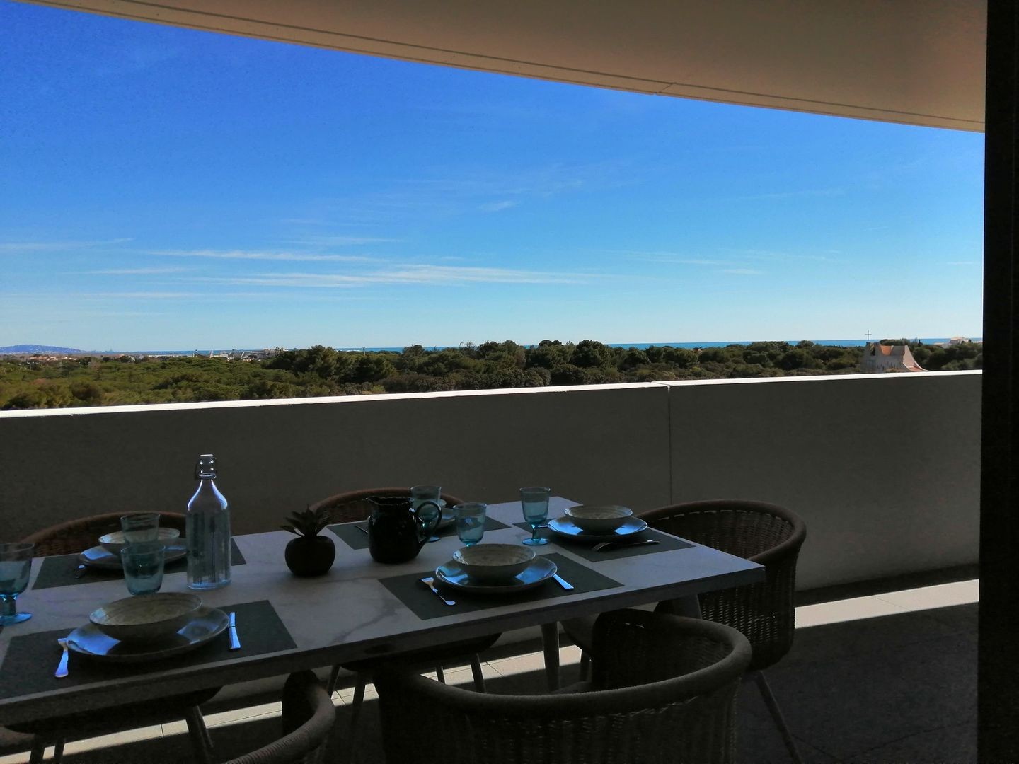 Découvrez cet élégant appartement T3 de 55 m², situé dans une résidence sécurisée neuve et contemporaine au cœur du Centre Port de Cap d'Agde, dans le quartier prisé ICONIC. Depuis le 5e étage (avec ascenseur), profitez d'un magnifique balcon/terrasse de 22 m² offrant une vue imprenable sur le Mont Saint Loup, le Mont Saint Clair et la mer. Un parking privé en sous-sol de la résidence vous assure un stationnement sécurisé. L’appartement se compose d’une entrée avec placard, d’une spacieuse pièce à vivre avec cuisine ouverte entièrement équipée, d’un coin repas avec table et chaises, et d’un salon avec canapé convertible et télévision. Vous disposerez de deux chambres : une avec deux lits gigognes et l’autre avec un lit double et un coin bureau. Une salle de bains avec WC séparés complète cet espace. Chaque pièce de vie donne sur le balcon/terrasse, qui dispose d’un coin repas avec table et chaises, ainsi qu’un coin salon avec fauteuils pour profiter du panorama. Confort et équipements : L’appartement est équipé d’un lit double en 140 cm, de deux lits gigognes en 80 cm, et d’un canapé convertible en 140 cm, pour une capacité d’accueil de 4 à 6 personnes (maximum 4 adultes et enfants). L'appartement dispose également de la climatisation, d'Internet, d'un micro-ondes, d'un réfrigérateur, d'un congélateur, d'un lave-vaisselle, d'un lave-linge et d'une télévision. Emplacement idéal à Cap d'Agde : La plage est accessible à 15 minutes à pied, tandis que les commerces et animations sont à seulement 30 m. L'accès direct au Port se fait par la Rambla, ce qui vous permet de profiter pleinement de l'emplacement central de cet appartement. Que ce soit pour des vacances en famille, entre amis, des déplacements professionnels, des activités sportives ou pour découvrir la richesse culturelle de la région, cet appartement T3 est le choix idéal. Référence : ICO A455