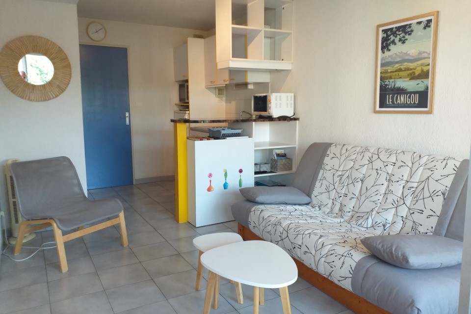 Appartement T2 80 m plage , garage individuel (classé 2 étoiles) Résidence sécurisée avec piscine Equipé pour 4 personnes (chambre individuelle) Loggia (fermée ouvrant aux 2/3) avec vue dégagée montagne et parc privé Central 100m commerces et animations mais calme Prix 320 euros (hors saison) à 670 euros maxi (haute saison )